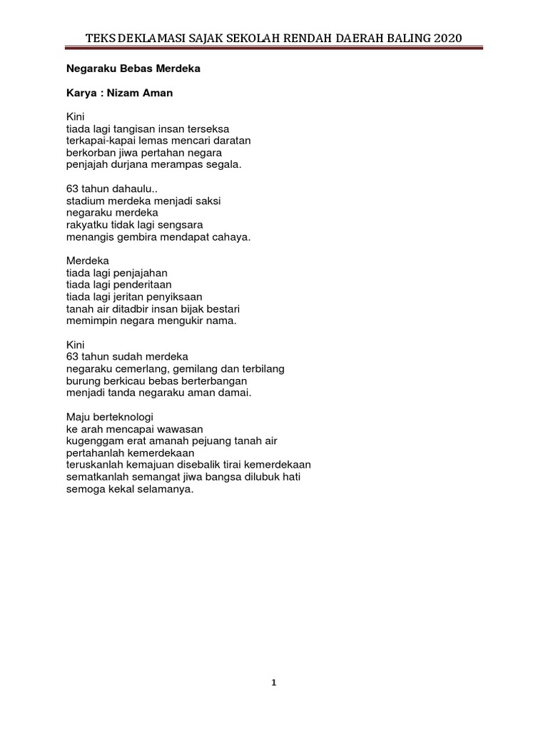 Johan e deklamasi sajak kemerdekaan sekolah menengah kpm tahun 2020. Sajak Kemerdekaan Samanan 2021. Artikel hanya terdapat dalam bahasa melayu article available only in malay.